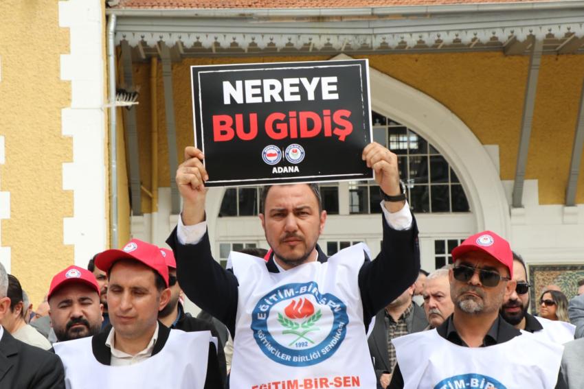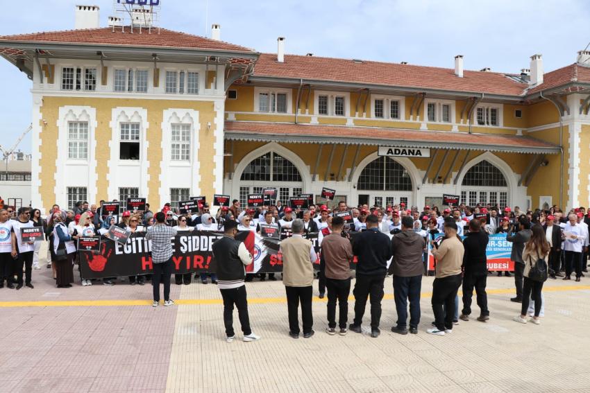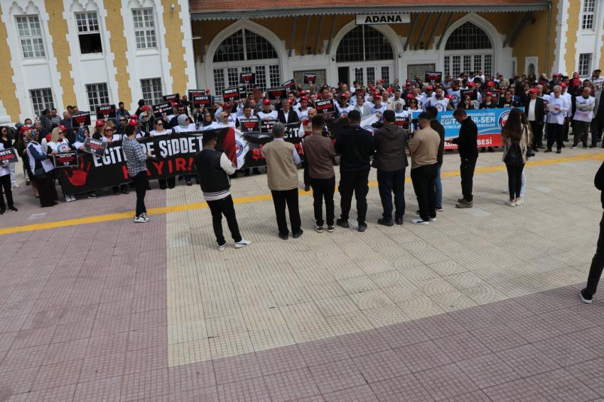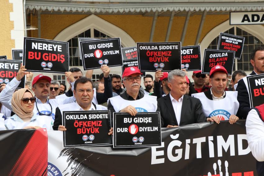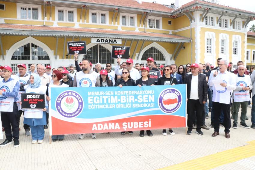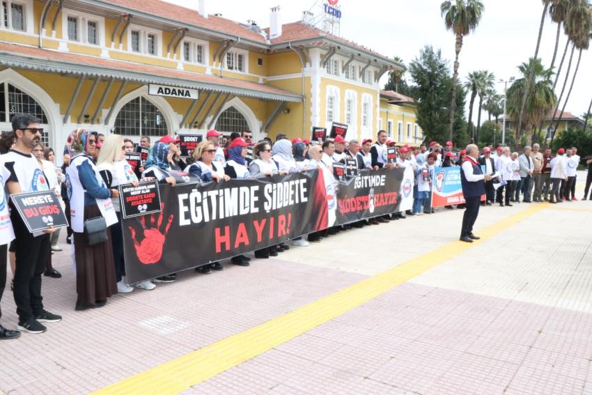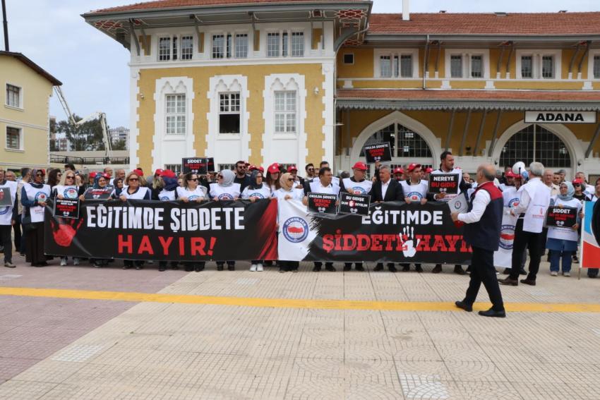 Siverek Ahmet Koyuncu Mesleki ve Teknik Anadolu Lisesi’nde okulun eski bir öğrencisi tarafından gerçekleştirilen saldırı, eğitim camiasını ayağa kaldırdı. Eğitim-Bir-Sen öncülüğünde Türkiye genelinde iş bırakma kararı alan eğitimciler, Adana İstasyon Meydanı’nda bir araya gelerek okullarda artan şiddet olaylarına tepki gösterdi.