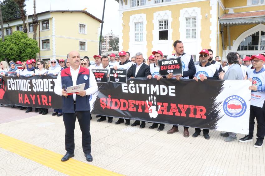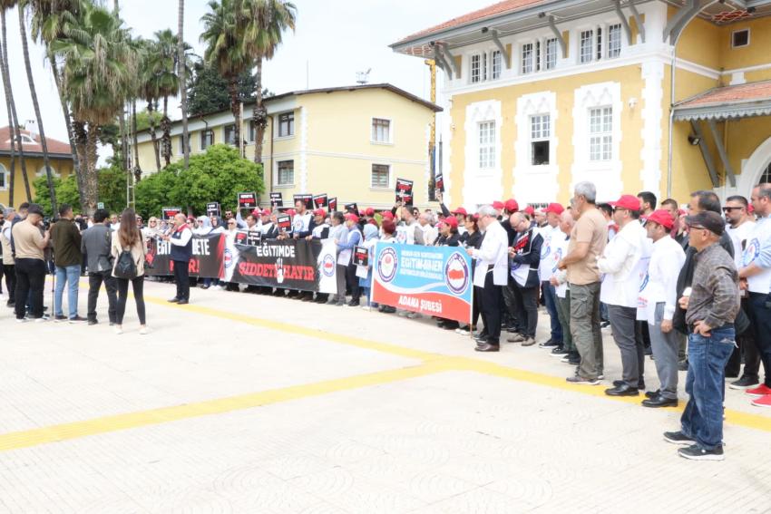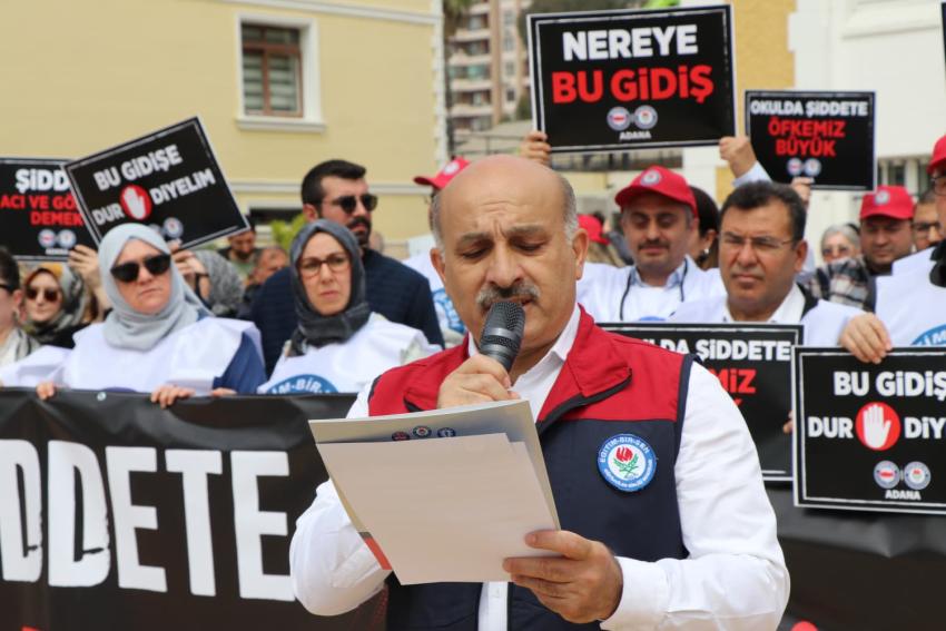 Geniş katılımlı eylemde okunan basın açıklamasında eğitimcilerin can güvenliğine dikkat çekildi. Kalabalık grup adına açıklamayı yapan Eğitim-Bir-Sen Adana Şube Başkanı Mustafa Sarıgeçili, şiddetin eğitim yuvalarını rehin aldığını belirterek yetkilileri acil önlem almaya çağırdı.
