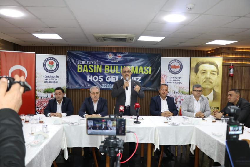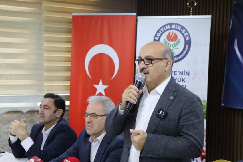 Eğitim-Bir-Sen Adana Şubesi tarafından gerçekleştirilen Basın Buluşması'nda konuşan Şube Başkanı Mustafa Sarıgeçili eğitim camiasının sorunlarını ve bu sorunların çözüm önerilerini gündeme taşıyarak birlik ve beraberlik vurgusu yaptı.