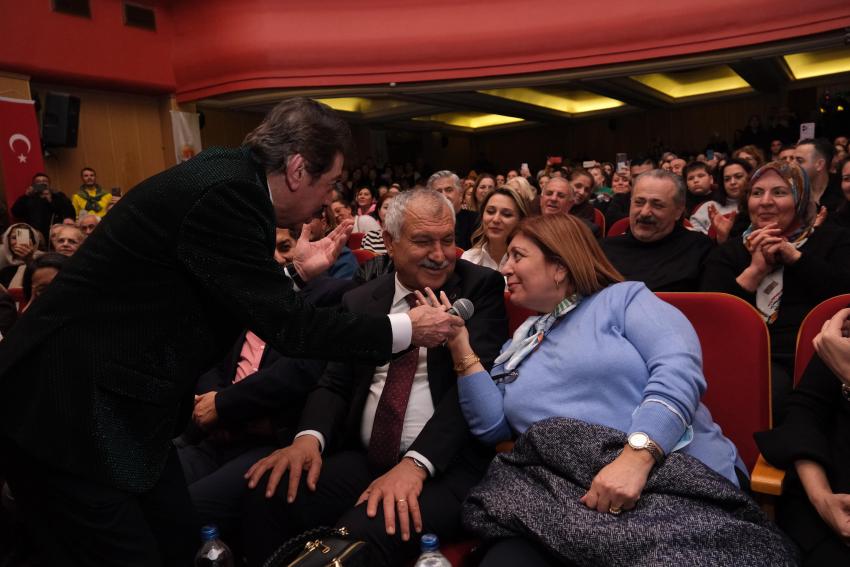 Ferdi Tayfur’un anma gecesinde gururu ve hüznü bir arada hissettiklerini kaydeden Başkan Zeydan Karalar, programın ardından Ahmet Selçuk İlkan ve orkestrasını sahnede tebrik etti.