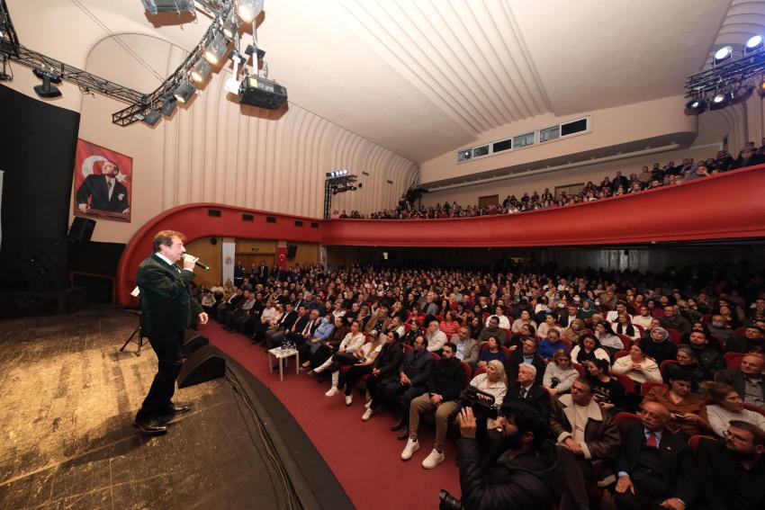 Adanalı sanatçı Ahmet İlkan Selçuk ve orkestrasına teşekkür eden Başkan Zeydan Karalar, salonu dolduran Adanalılara da minnettarlıklarını iletti.