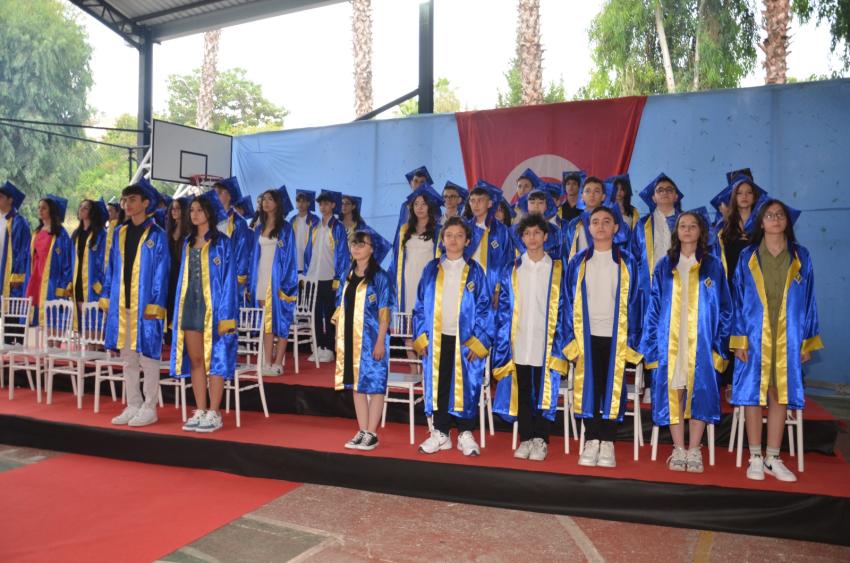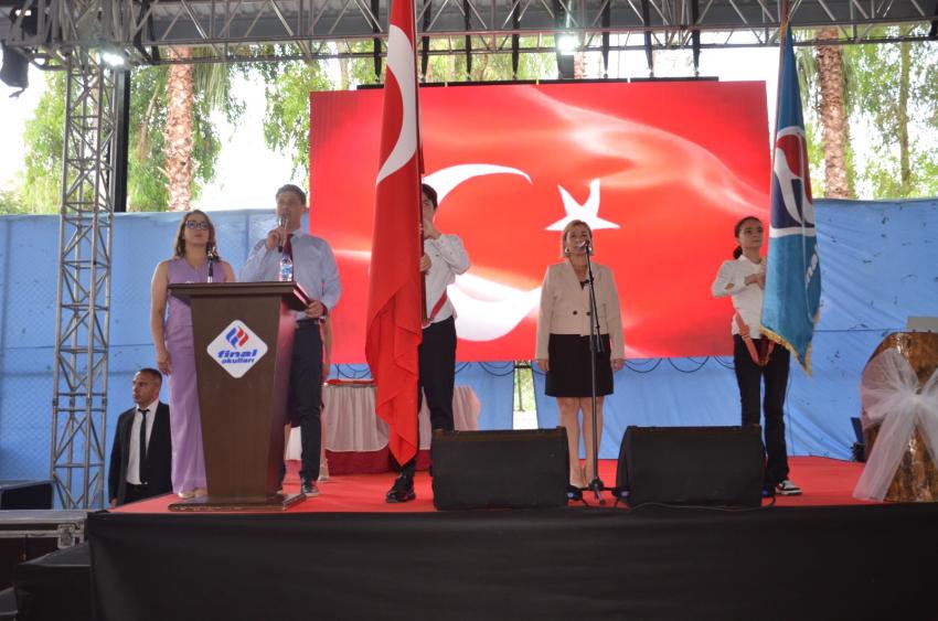 Tören Türk Bayrağı ve Final Okulları flamalarının devir teslimi, Final Andı’nın okunması ve mezun olan öğrencilere diplomalarının verilmesiyle devam etti. Heyecanlı anlara sahne olan mezuniyet törenlerinde, gelenek olduğu üzere Adana Final Fen ve Anadolu Lisesi’nden 6 birinci ve Ortaokul’dan 9 birinci mezuniyet kütüğüne plakalarını çaktı. Dereceye giren diğer öğrencilere plaketlerinin verilmesinin ardından, kepler havaya atılarak mezuniyet coşkusu yaşandı. Hep birlikte yenen mezuniyet pilavının ardından tören sona erdi.