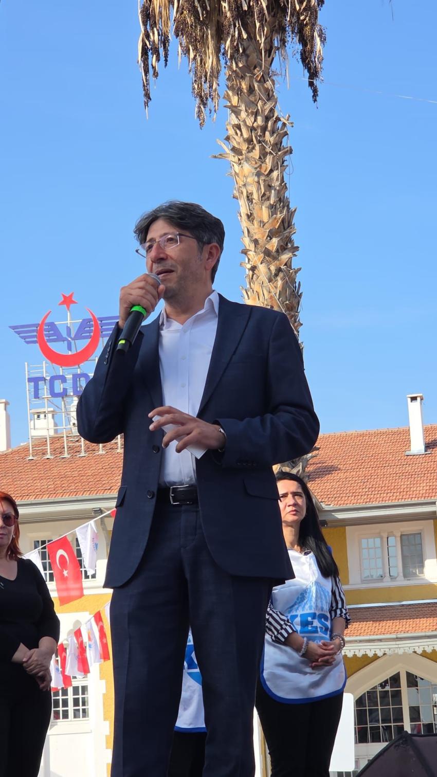 Mitingde konuşan KESK Eş Genel Başkanı Ahmet Karagöz, iktidarın tercihini emekten çalışandan yana değil sermayeyi büyüten, ranttan beslenenlere kullandığını söyledi. Karagöz, “Kaynak var ama bu kaynak faize, savaş sanayisine partidaş, yandaş müteahhitlere aktarılmaktadır. Bu bütçe yoksulun çalışanın değil, sermaye büyütenlerin bütçesi” dedi.