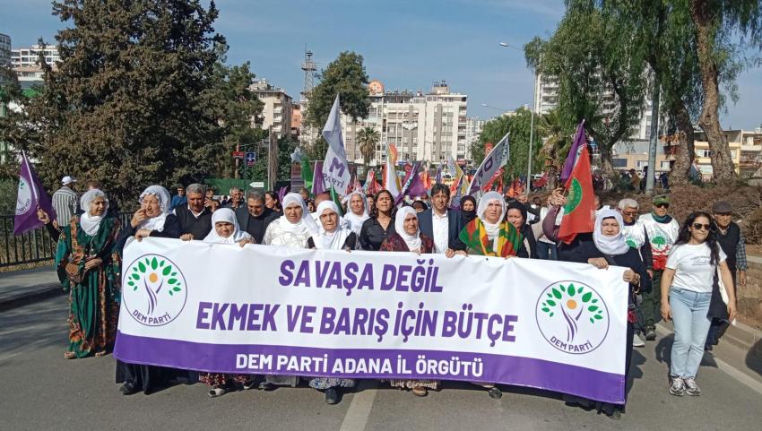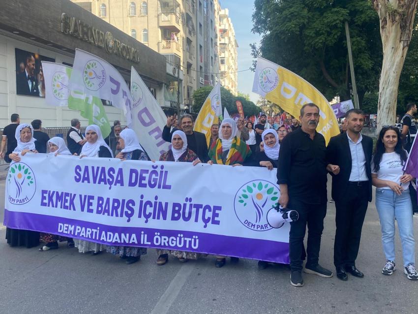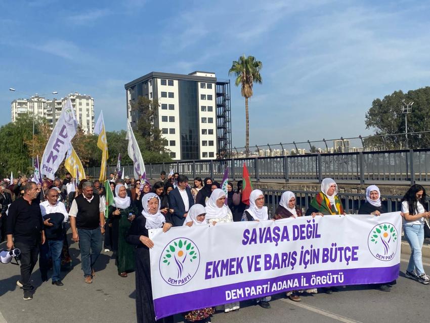 Geçinemiyoruz mitinginde daha sonra söz alan DEM Parti Mersin Milletvekili Ali Bozan, Türkiye Büyük Millet Meclisi’nin öncelikli gündeminin Kürt sorununun çözümüyle savaşa yıkıma ayrılan bütçenin emeğe işçiye çalışana yoksul halkların yaşamına aktarılması gerektiğini ifade etti, sözlerine , “Kürt meselesinin çözümü için müzakere edeceğiz. Ancak mücadele etmekten asla vazgeçmeyeceğiz. Sokakta, alanda, sahada, halkların yanında olmaya devam edeceğiz” diye son verdi