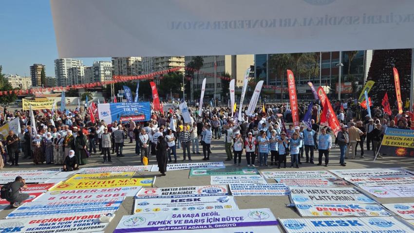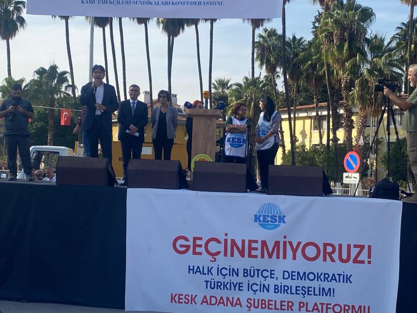 Kamu Emekçileri Sendikaları Konfederasyonu (KESK), Adana’da 14 ilin katılımıyla “Geçinemiyoruz! Halk için bütçe, Demokratik Türkiye” şiarıyla bölgesel bir miting düzenledi.