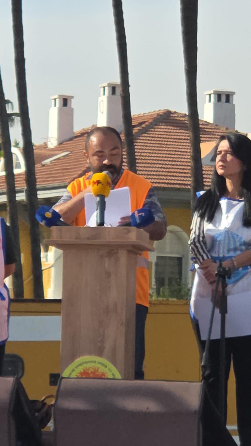 EMEP Genel Başkanı Seyit Aslan da konuşmasında 2026 bütçesinin önceki yıllarda olduğu gibi “işçiden, emekçiden alıp sermayeye ve tekellere aktarılan bir servet transfer bütçesi” olduğunu dile getirdi yoksulu daha yoksul, zengini daha zengin yapan bir düzeni bir bütçeyi asla kabul etmeyeceklerini mücadelelerinin sonuna kadar devam edeceklerini ifade etti.