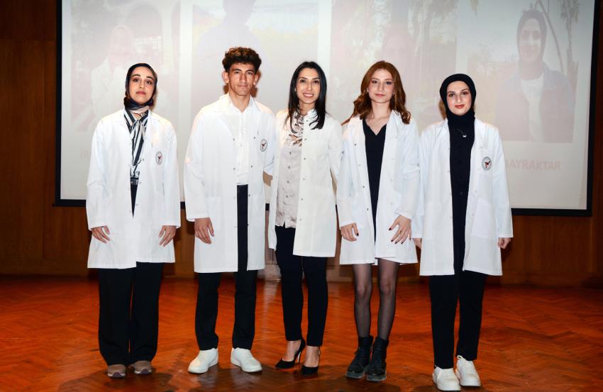 Genç eczacılar beyaz önlüklerini giydi