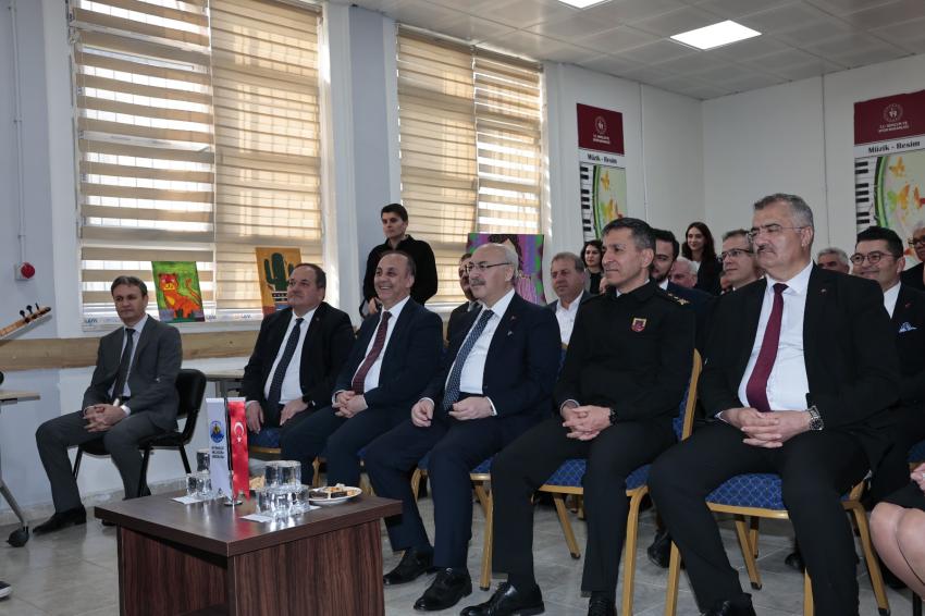 Daha sonra resim sergisini de gezerek eserlerle ilgili bilgi alan Vali Köşger, öğrencilerimiz tarafından sergilenen tiyatro oyununu da ilgiyle izledi.