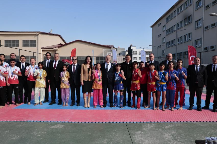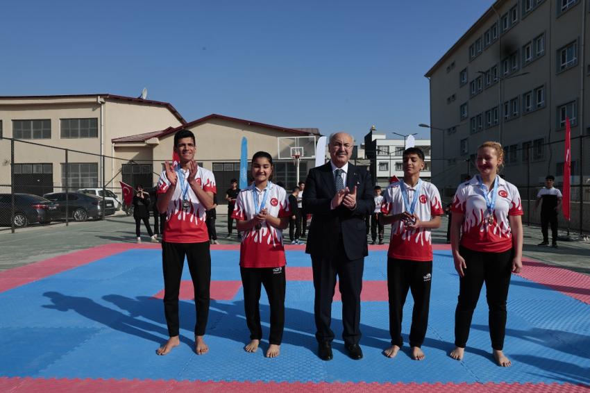 Öğrencilerin kişisel ve akademik başarılarını desteklemek amacıyla gerçekleştirilen Wushu Kung Fu eğitimi, keçe kursu ve resim atölyesi, sosyal uyum ve katılım becerileri eğitimi hakkında bilgi alan Vali Köşger, 7. Açık Balkan Wushu Kung Fu Şampiyonası’nda altın madalya almaya hak kazanan öğrencilerimize madalyalarını takdim etti.