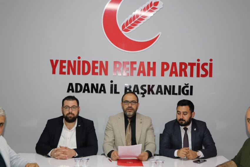 Yeniden Refah Partisi Adana İl Başkanı Özkut Özdemir, partisinin il başkanlığında düzenlediği basın toplantısında güncel ekonomik gelişmeleri, gençlerin evlilikten uzaklaşmasını, süresiz nafaka uygulamasını ve çiftçilerin yaşadığı sorunları değerlendirdi.