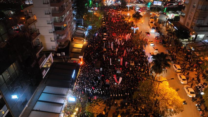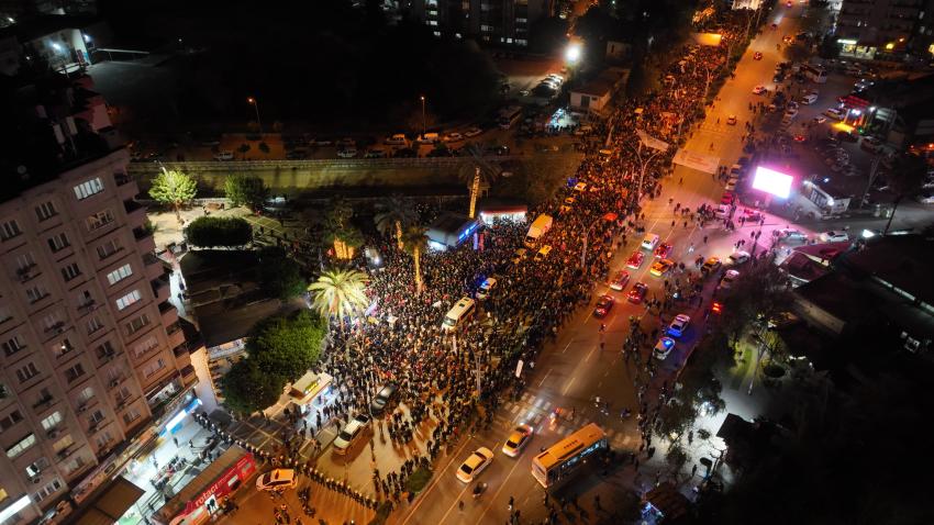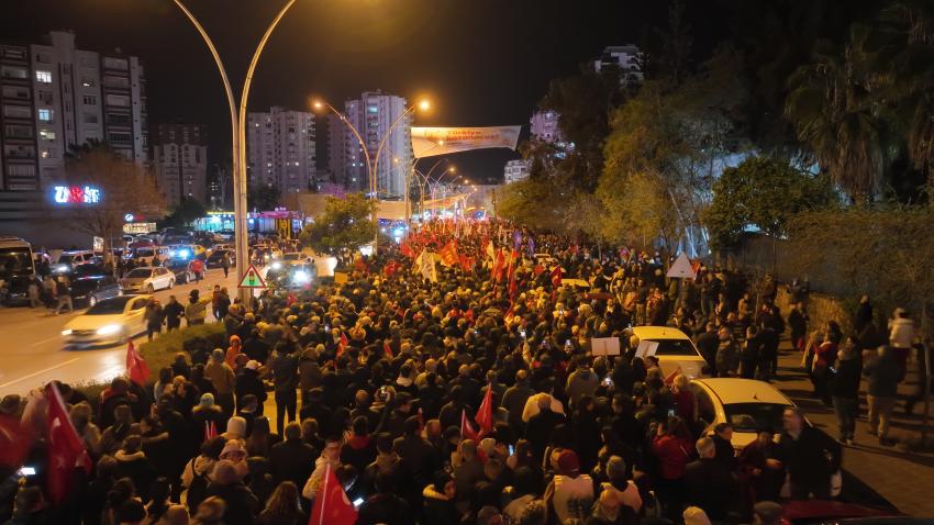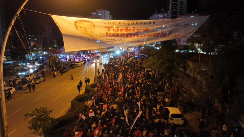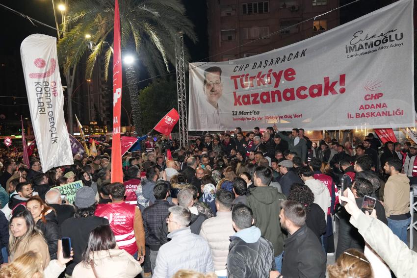 Cumhuriyet Halk Partisi (CHP) Adana İl Başkanlığı'nın "Ekrem İmamoğlu’na ve millet iradesine yönelen darbe girişimine karşı ailelerimizle birlikte yürüyoruz" çağrısına on binlerce kişi yanıt verdi. AKSA Gaz Kavşağı’nda bir araya gelen topluluk, Duygu Kafe önüne kadar sloganlarla yürüdü.