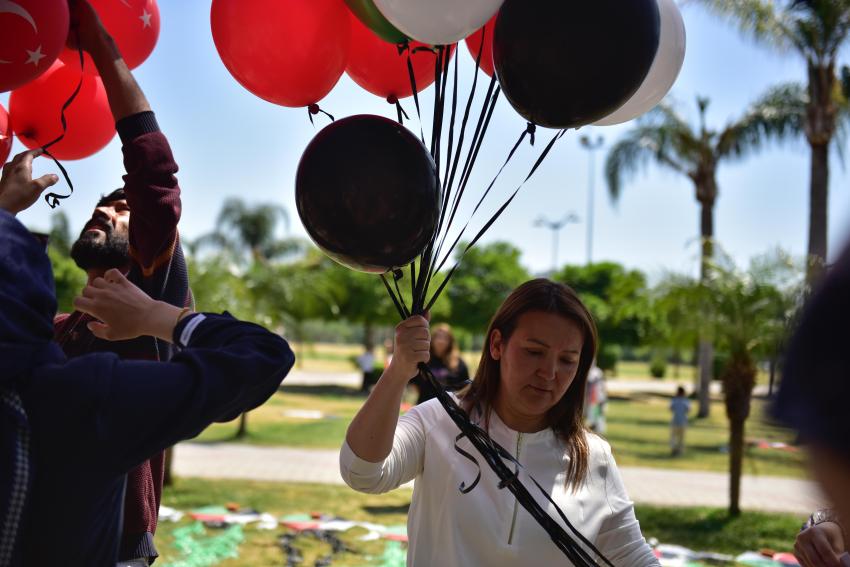 Çiçek, Filistin halkının yalnız olmadığını belirterek,’’23 Nisan Çocuk Bayramı münasebeti ile yalnızca kendi çocuklarımızı değil, savaşın gölgesinde yaşama hakkı elinden alınan Filistinli çocuklarımızıda anmak ve gökyüzüne; umutlarımızı, barışı ve özgürlüğü bırakmak için toplanan onlarca Adanalı çocuk Filistindeki kardeşlerine gökyüzünden bir mesaj gönderdi. Bugün gökyüzünde yükselen her uçurtma, savaşın karanlığına karşı bir renk, bir umut, bir direniş olacak ve her balon melek olup cennete uçan mahsun çocuklarımız için gökyüzüne ulaşacak. Dayanışmamızla, dualarımızla, sesimizle yanlarındayız.’’ diye ifade etti.