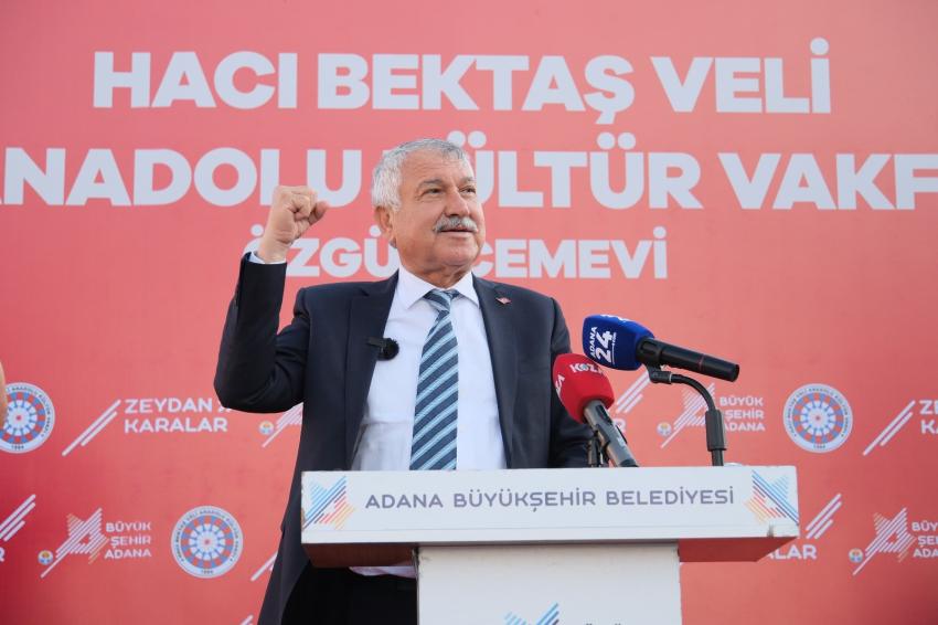 Adana Büyükşehir Belediyesi’nce Yüreğir ilçesinde inşa edilen Hacıbektaş Veli Anadolu Kültür Vakfı Özgür Cemevi’nin açılışına Türkiye Belediyeler Birliği Başkan Vekili ve Adana Büyükşehir Belediye Başkanı Zeydan Karalar, Hacıbektaş Veli Anadolu Kültür Vakfı Genel Başkanı Ercan Geçmez, ilçe belediye başkanları, milletvekilleri, siyasiler ve Adanalılar katıldı.
