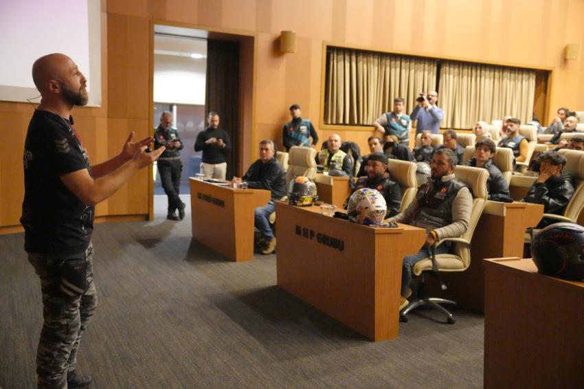 “Hayat Motorcuya Güzel” programının yapımcısı ve sunucusu İsmail Biçer ise verdiği eğitimde katılımcılara yaşamsal öneme sahip bilgileri ve trafikte yaşadığı deneyimleri aktardı.