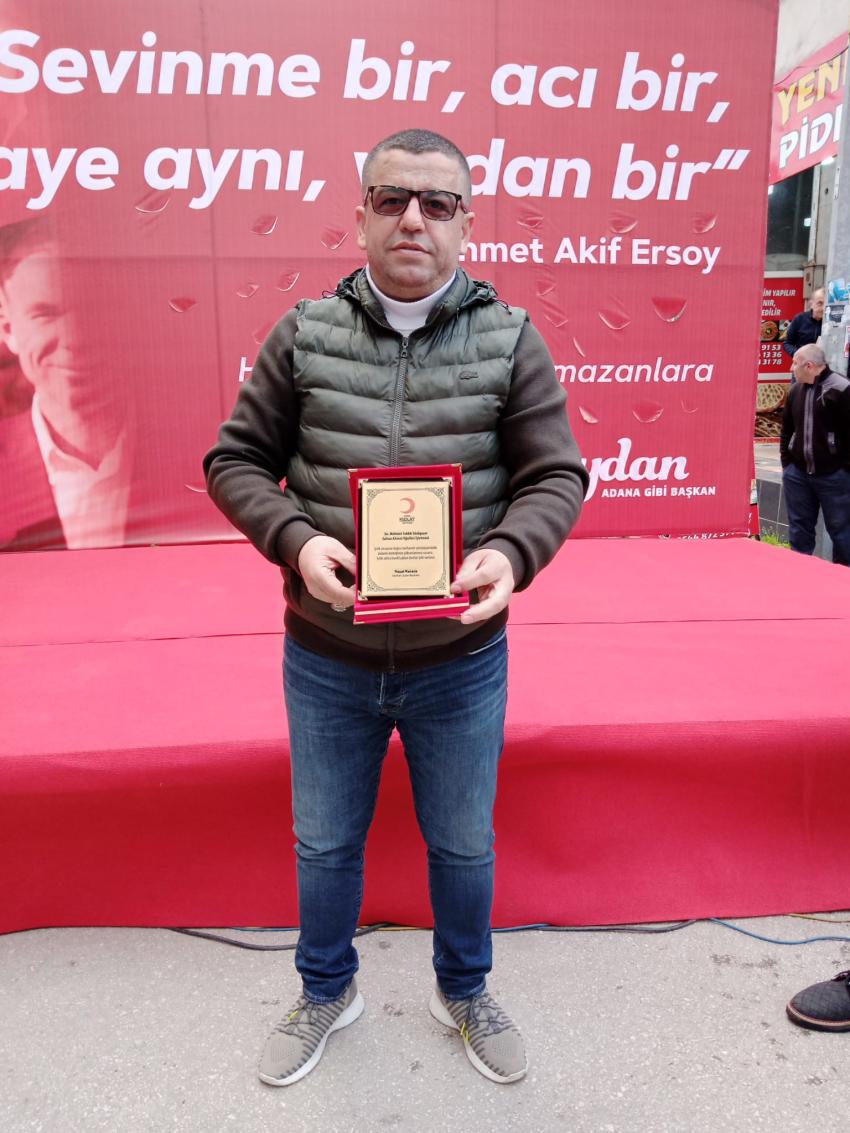 Kızılay Seyhan ilçe Şubesi de Kızılay’a yaptıkları yardımlar ve verdikleri iftarlar nedeniyle Mehmet Sıddık Sözügeçer ve Aşık Büyükbaş kardeşlere plaket verdi. 2 kardeş, “Sultan Ahmet Oğulları olarak her daim Türk Kızılay'ı na destek olmaya devam edeceğiz. Ne zaman nerede olursa olsun biz elimizden ne geliyorsa yapmaya hazırız. Bizlere bu güzel programımızda bu plaketleri layık gören Türk Kızılay Seyhan Şube Başkanı Reşat Karaca başkanımıza ve bizleri yalnız bırakmayan Haydar Şengül kardeşimize teşekkür ediyoruz” dediler.