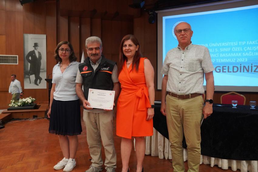Türkiye’nin, Dünya’da afetler açısından yüksek riskli ülkelerden biri olduğunu bildiren Prof. Dr. Tanır, “Bu yüzden her vatandaş gibi hekimlerimizin de afetlere karşı hazırlıklı olması ve bu süreçlerde verilecek sağlık hizmetlerini iyi bilmeleri gerekiyor. Bu gerekçeden hareketle, Üniversitemiz Tıp Fakültesi Halk Sağlığı Anabilim Dalı olarak Tıp Fakültemiz 5. sınıf öğrencilerine yönelik “Afetlerde Birinci Basamak Sağlık Hizmetleri” adlı “Özel Çalışma Modülü” eğitimi verdik. Bu özgün eğitimde, çok sektörlü yaklaşımla Halk Sağlığı Anabilim Dalı öğretim üyelerinin yanı sıra Acil ve İlk Yardım Anabilim Dalı, Mühendislik Fakültelerinin öğretim üyeleri ile AFAD Adana İl Birlik Müdürlüğü’nün eğiticileri tarafından, teorik ve uygulamalı geniş içerikli bir program ile geleceğin hekimlerini afetlerde sunacakları sağlık hizmetlerine hazırladı. Türkiye için örnek eğitim programlardan birinin daha Çukurova Üniversitesi Tıp Fakültesi öğrencilerine verilmesinin sağlanmasının mutluluk duyuyoruz. Emeği geçen herkese teşekkür ediyorum” dedi.