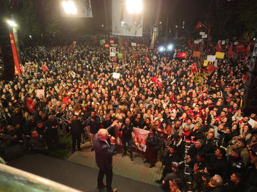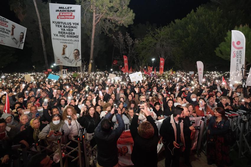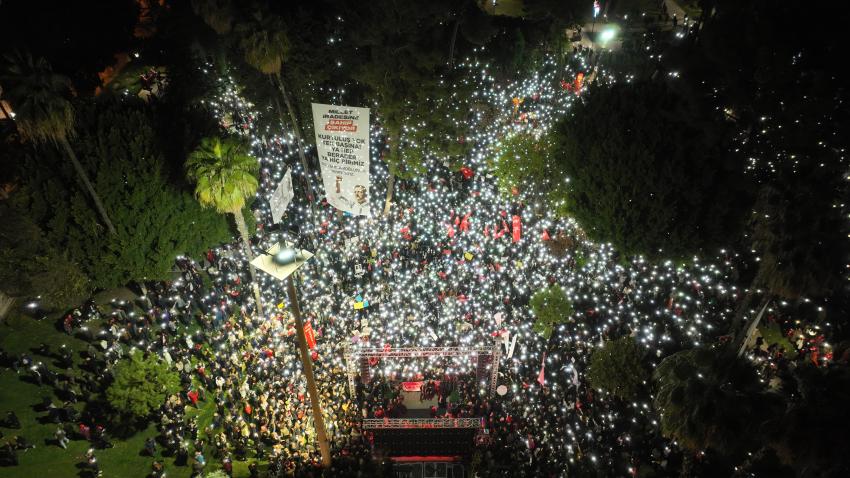 “Bugün burada farklı siyasi partilerden, çeşitli sivil toplum kuruluşlarından kardeşlerimiz var. Hepimizin amacı ülkemize demokrasiyi, adaleti getirmek, hukukun üstünlüğünü tesis etmek. Ortak amacımız bu. Gençlerimiz iş bulsun, aş bulsun istiyoruz. Üniversite mezunlarımız işsiz. Ülkemiz esenliğe, huzura, kadın haklarına, insan haklarına, hukukun üstünlüğüne, demokrasiye ulaşıncaya kadar mücadeleye devam edeceğiz. Türkiye’mizi; liyakatın yeniden tesis edildiği, bilimin ön planda tutulduğu bir ülke haline getireceğiz. Adana Ekrem Başkanımızın yanında. Olacak ilk seçimde sadece İzmir’in dağlarında değil, Türkiye’nin dört bir yanında yeniden çiçekler açacak. Bugün burada Atatürk Parkı’nda, Ata’mızın huzurunda, kurduğu Cumhuriyetin ilelebet yaşayacağına dair söz veriyoruz.”