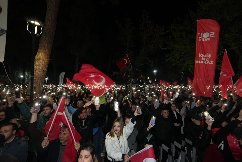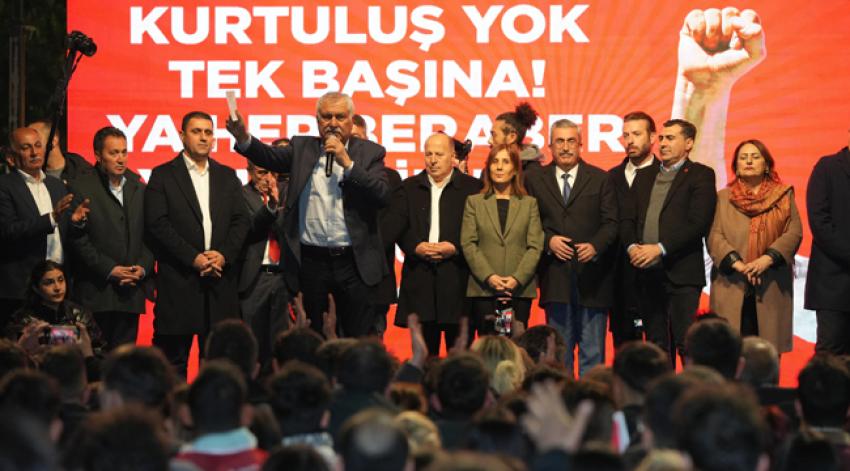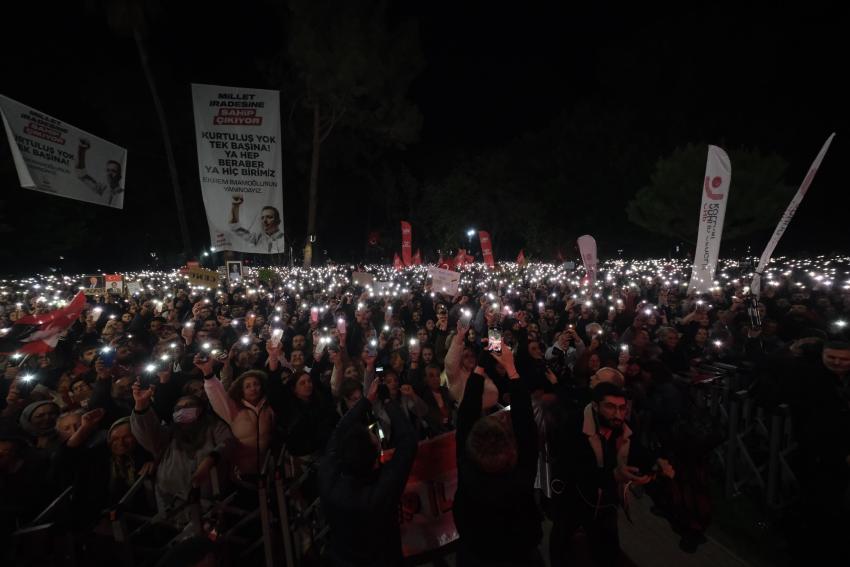 “Ülkemizin doğusundan batısına, kuzeyinden güneyine, tüm insanlarımızın eşit vatandaş olduğunu hissedeceği demokrat bir Türkiye istiyoruz. Mitinglere katılan insanlarımızın dertleri kardeşlik, barış ve demokratik haklarına ulaşmak. Hepimiz işin, aşın, barışın ve köklü demokrasinin olduğu bir ülke istiyoruz. Derdimiz, çabamız budur. Hukuktan, adaletten ve tarafsız davrandıklarından bahsediyorlar. Oysa yaşananlar hukuksuzluğu ve adaletsizliği işaret ediyor. Ülkenin her noktasından belediye başkanları görevden alınıyor. Halkın oylarıyla seçilen belediye başkanlarının görevden alınması kabul edilemez. Hukuk devletinde buna kimsenin hakkı yok. Seçilmiş iradenin yok sayılmasıdır yapılan.”