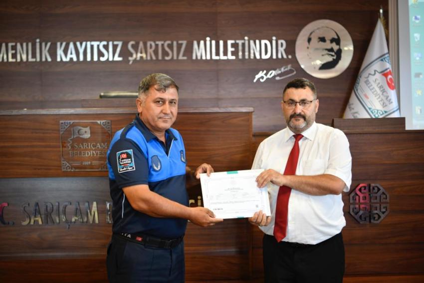 Konuşmaların ardından Sarıçam Belediyesi çalışanlarından oluşan kursiyerlere sertifikaları Başkan Bilal Uludağ ve Sarıçam Halk Eğitimi Müdürü Alpaslan Akıllı tarafından takdim edildi.