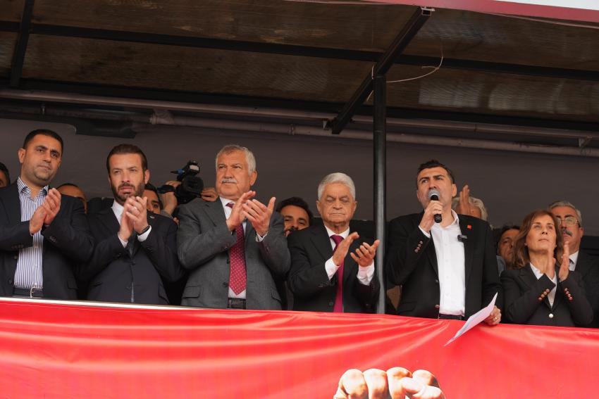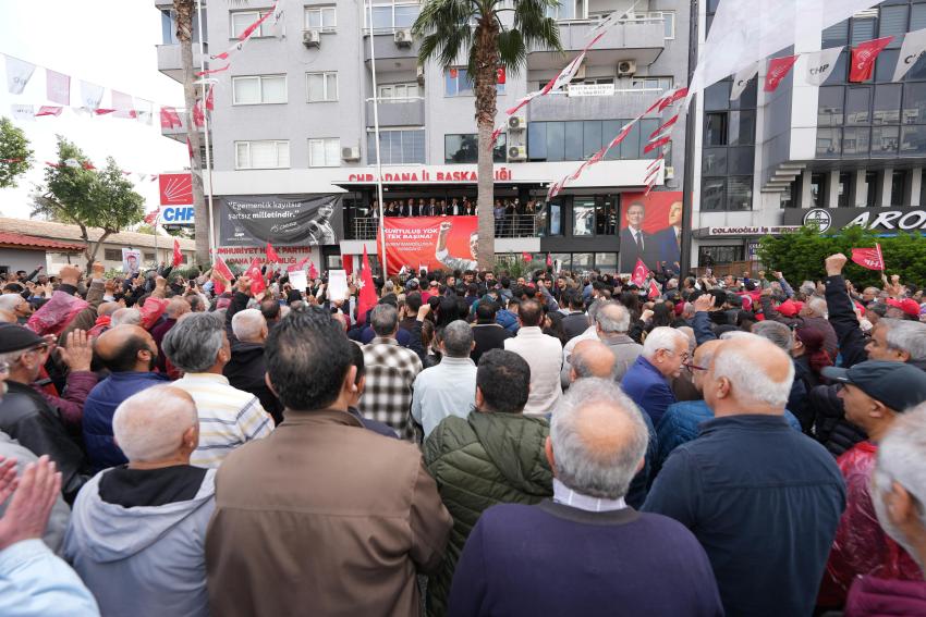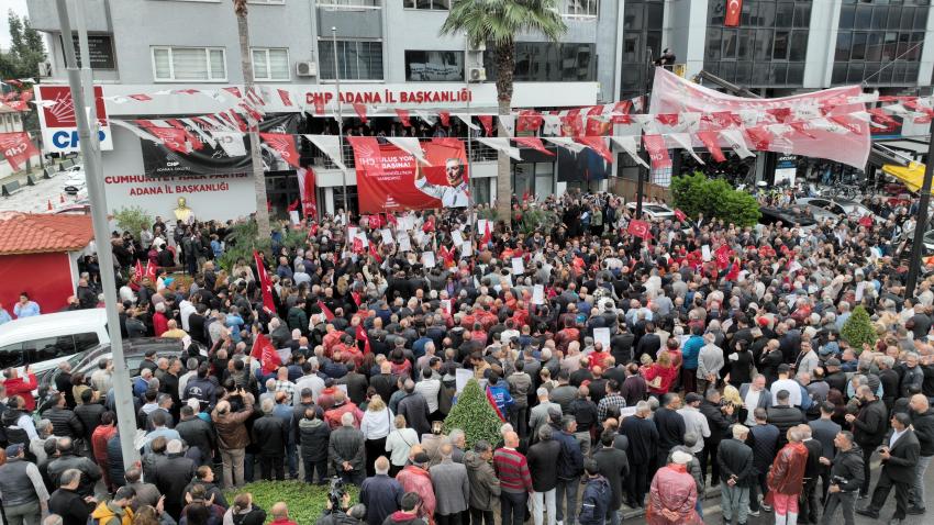 Adana İl Başkanlığı önünde yapılan basın açıklamasına CHP Adana İl Başkanı Doç. Dr. Anıl Tanburoğlu, Adana Büyükşehir Belediye Başkanı Zeydan Karalar, Seyhan Belediye Başkanı Oya Tekin, Yüreğir Belediye Başkanı Ali Demirçalı, Çukurova Belediye Başkanı Emrah Kozay, Ceyhan Belediye Başkanı Kadir Aydar, CHP ilçe başkanları, meclis üyeleri, partililer ve Ekrem İmamoğlu’na destek vermek için gelen binlerce vatandaş katıldı.