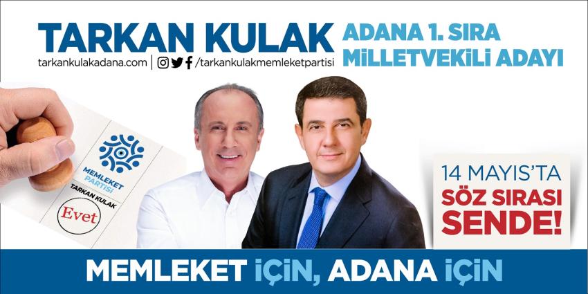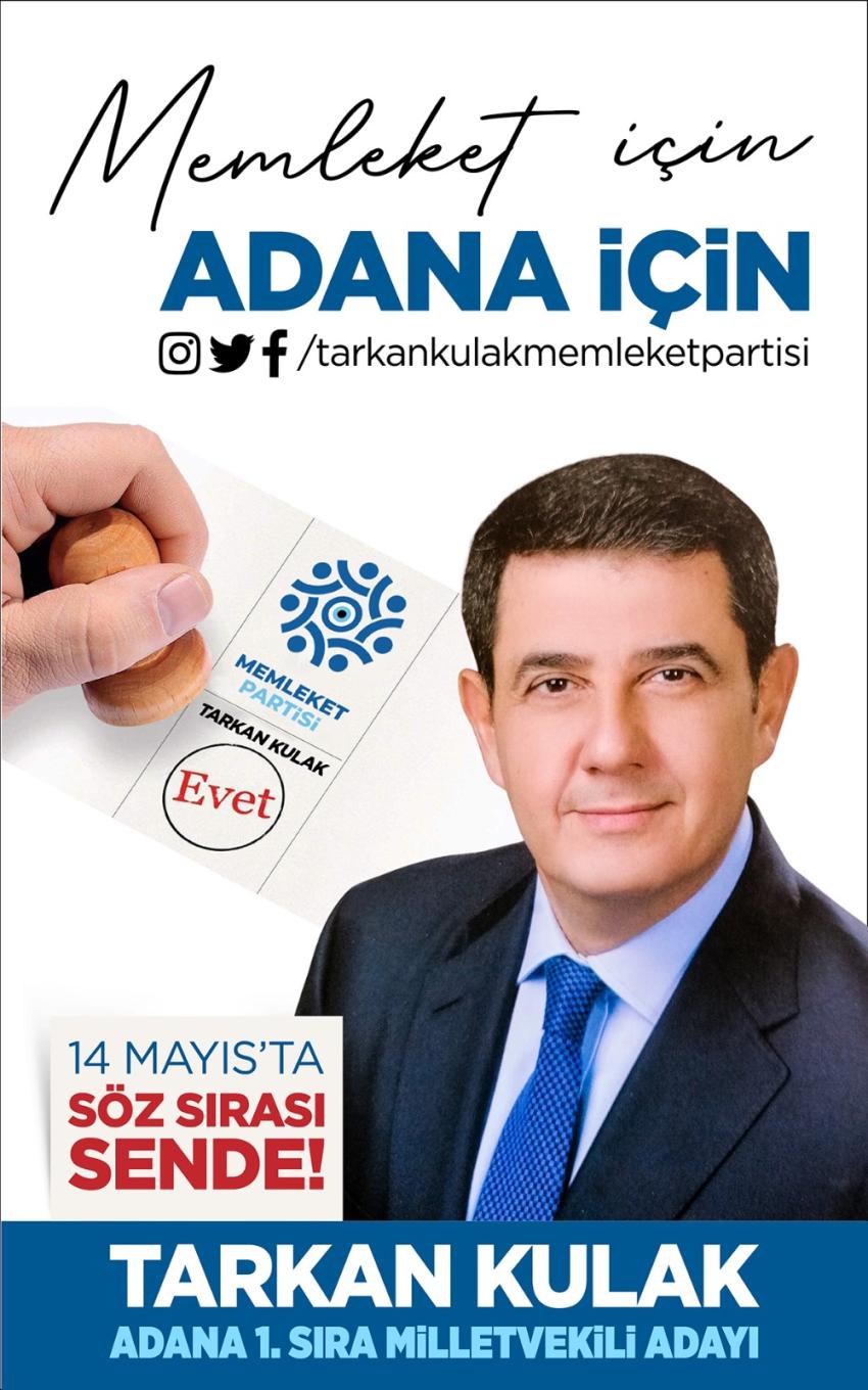 Memleket Partisi Adana Milletvekili Adayı Tarkan Kulak yaptığı açıklamada şunları söyledi: