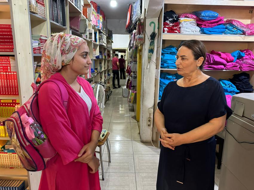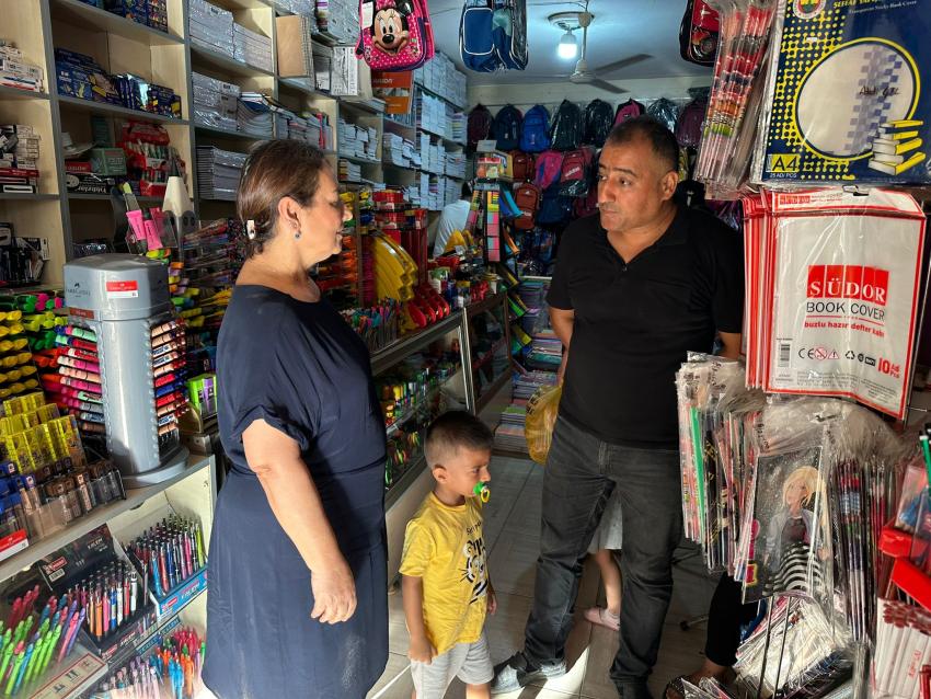 CHP Adana Milletvekili Müzeyyen Şevkin, öğrenci velilerinin eğitim öğretim masraflarına dikkat çekmek için Adana’da kırtasiyecileri ziyaret etti. Şevkin, hem kırtasiyecilerle satışlara ilişkin konuşurken alışveriş yapan yurttaşlarla da sohbet etti.
