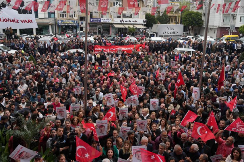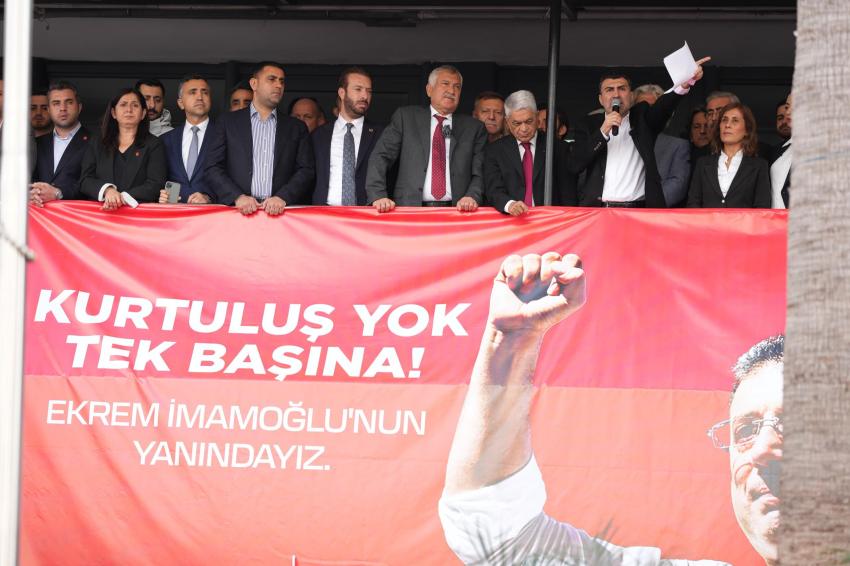 İstanbul Büyükşehir Belediye Başkanı ve Türkiye Belediyeler Birliği Başkanı Ekrem İmamoğlu’nun gözaltına alınması nedeniyle, CHP İl Binası’nda gerçekleştirilen ve halkın yoğun ilgisinden dolayı mitinge dönüşen basın toplantısında, demokrasi ve hukuk vurgusu yapıldı.