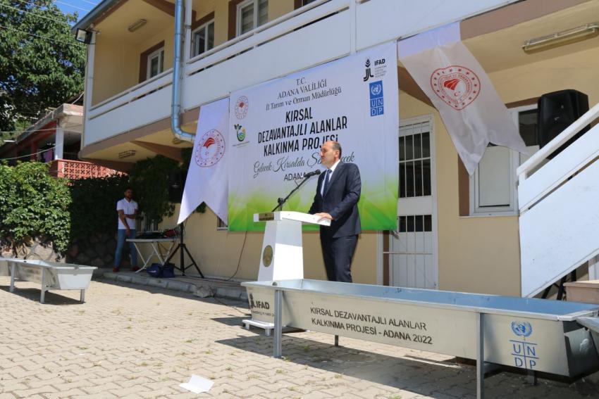 İl Müdürü Tekin burada yaptığı konuşmada 2022 yılı için projeden ilimize ayrılan bütçenin yaklaşık 23 milyon TL olduğunu belirterek, " Bu bütçe ile Tufanbeyli ilçemizde Yöresel Ürünler Pazar Yeri Yapımı, Kozan Hayvan Pazarı yapımı, Tufanbeyli ilçesinde 5 adet hayvan gölgeliği, Saimbeyli, Feke, Tufanbeyli, Kozan ve Pozantı Ekonomik Kalkınma Kümesinde Sıvat Dağıtımı yer almaktadır. Altyapı yatırımları kapsamında 2022 yılı içerisinde bugüne değin Tufanbeyli ilçesinde meralarda 5 adet gölgelik yapımı devam etmekte olup, hayvan yetiştiricilerine yönelik mera alanlarında kullanılmak üzere 57 büyükbaş ve 132 küçükbaş olmak üzere 189 adet sıvat (hayvan içme suyu teknesi) tarafımızca alınmış ve ilçelere teslimatı yapılmıştır. Bugün Pozantı ilçemize verilen 28 adet sıvatı teslim ediyoruz. Bunlar 3 farklı meraya konarak hayvanların faydalanması sağlanacak." dedi.