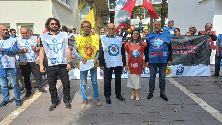 Eğitim-Bir-Sen Adana Şube Başkanı Mehmet Sezer, Eğitim-İş Adana 2 Nolu Şube Başkanı Emin Erkan Şenol, Eğitim-Sen Adana Şube Başkanı Hüseyin Kaya, Hürriyetçi Eğitim Sen Adana Şube Başkanı Ergün Ayyıldız ile çok sayıda eğitimcinin katıldığı ortak basın açıklamasında konuşan Eğitim-İş Adana 1 Nolu Şube Başkanı Seher Ergin şunları söyledi: