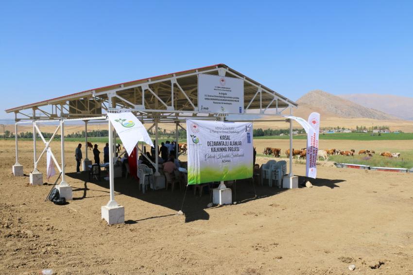 Adana’nın Tufanbeyli İlçesinde Kırsal Dezavantajlı Alanlar Kalkınma Projesi kapsamında 5 farklı merada yapımı tamamlanan hayvan gölgelikleri açılışı yapılarak büyükbaş ve küçükbaş hayvanların kullanımına sunuldu.