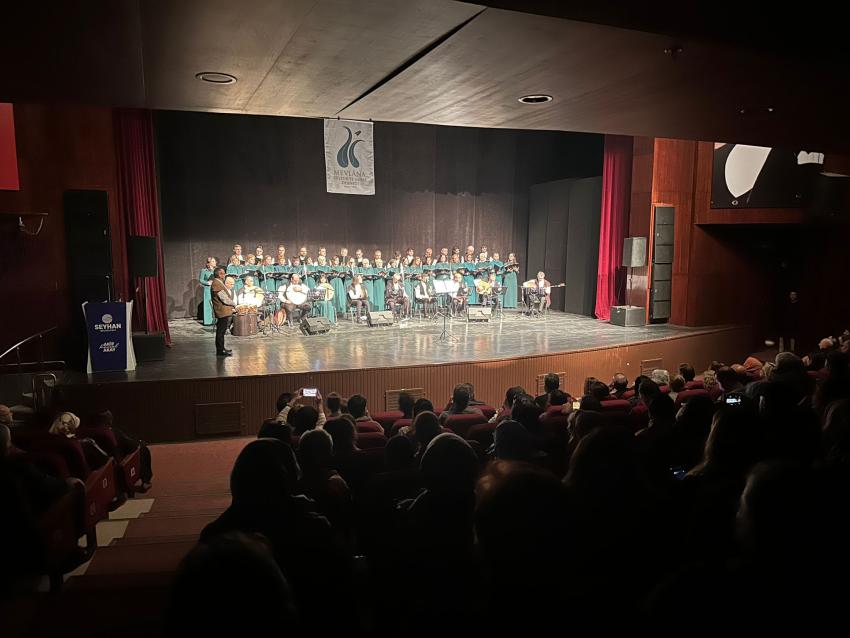 Seyhan Belediyesi, Mevlana Kültür ve Sanat Derneği ve Uluslararası Mevlana Vakfı işbirliği ile gerçekleştirilen ve Mevlana’nın 22.kuşak torunu Esin Çelebi Bayru’nun katılımıyla gerçekleştirilen etkinlikte ilk olarak Tasavvuf Musikisi Korosunun konseri dinlendi. Konserin ardından aynı zamanda Uluslararası Mevlana Vakfı Başkan Yardımcısı olan Mevlana’nın torunu Esin Çelebi Bayru “Mz.Mevlana ve Semâ” konulu bir konferans verdi. Etkinliğin sonunda ise Sema töreni gerçekleştirildi.