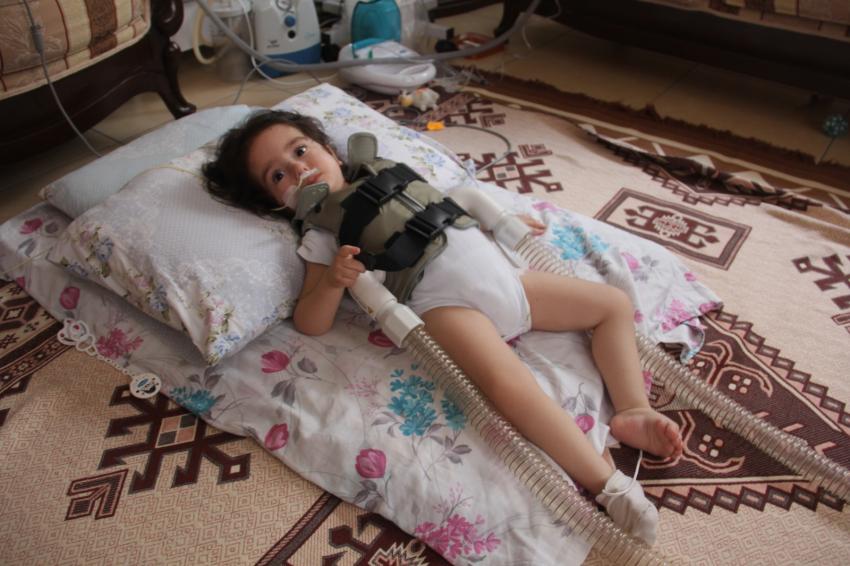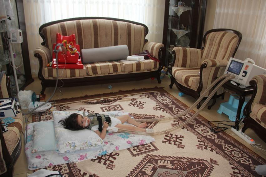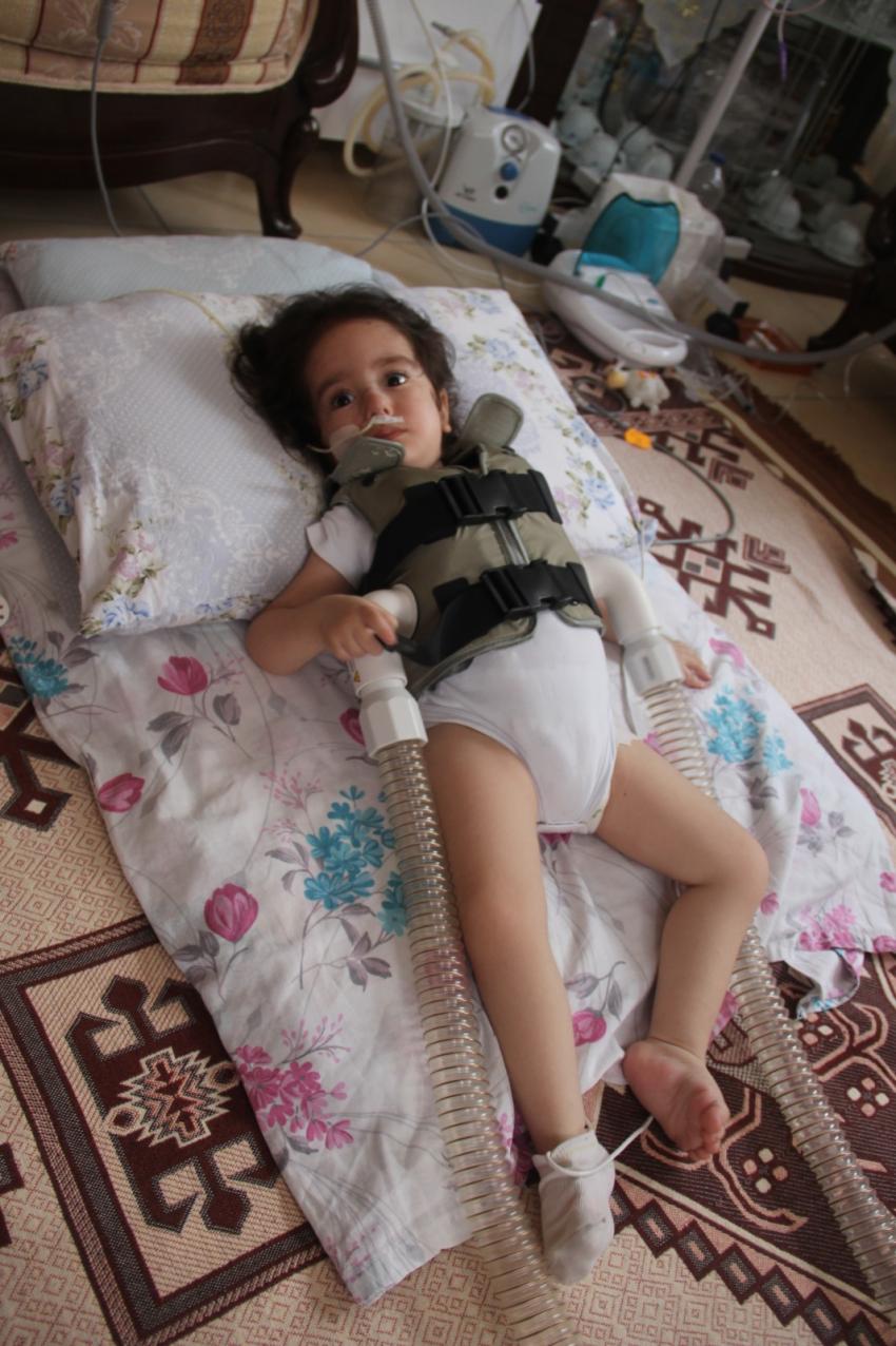 “Muhammed Emin bir yemek yesin istiyoruz. Rahat nefes istiyoruz. Maske ile nefes alıyor. Uyuduğunda maskesiz uyuyamıyor. Çünkü bu bebeklerde kas eridiği için kas kaybı olduğu yutkunamıyorlar. Yutkunamadıklarında da nefessiz kalıyorlar ve kalpleri duruyor. O yüzden destek bekliyoruz. 3 aldan sonra fark ettik. Doğduğunda normal bir bebekti. Beslendiğinde nefes borusuna yemek kaçıyordu. Bu bebeklerin yemek yemesi için karnı ve boğazı deliniyor. Muhammed Emin’in delinmedi ama her an deline bilir. 2.5 yıldır annesi 24 saat başında cihazları takip ediyor oksijen seviyesini takip ediyor. Gerçekten çok ağır bir hastalık. İlaç var ama çok pahalı olduğu için alamadık.”