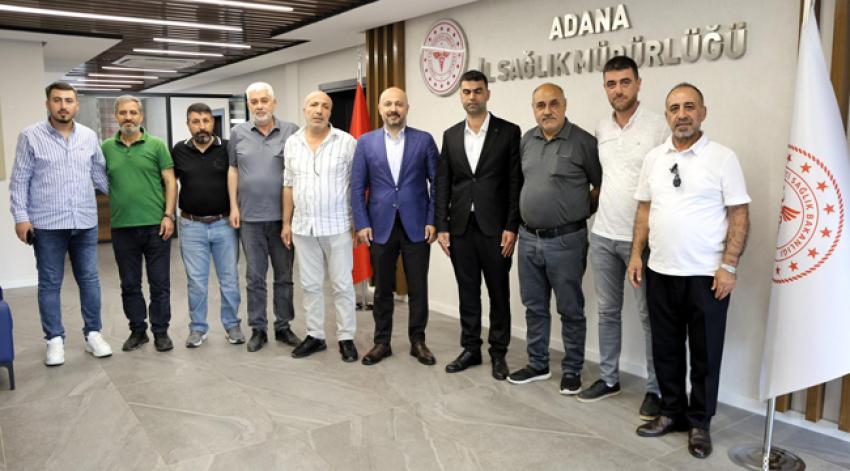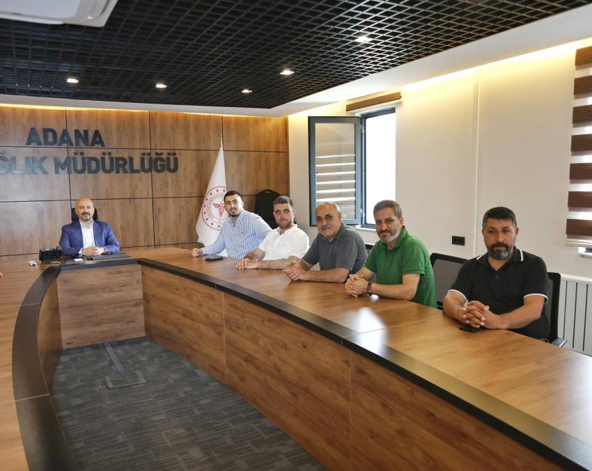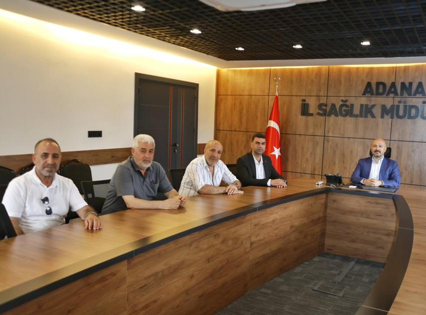 Adana İl Sağlık Müdürü Uzm. Dr. Halil Nacar, kendisini ziyaret eden Sivil Toplum Kuruluşu (STK) temsilcilerinin ziyaretinde sağlık hizmetlerindeki çalışmaları anlatmayı sürdürüyor.