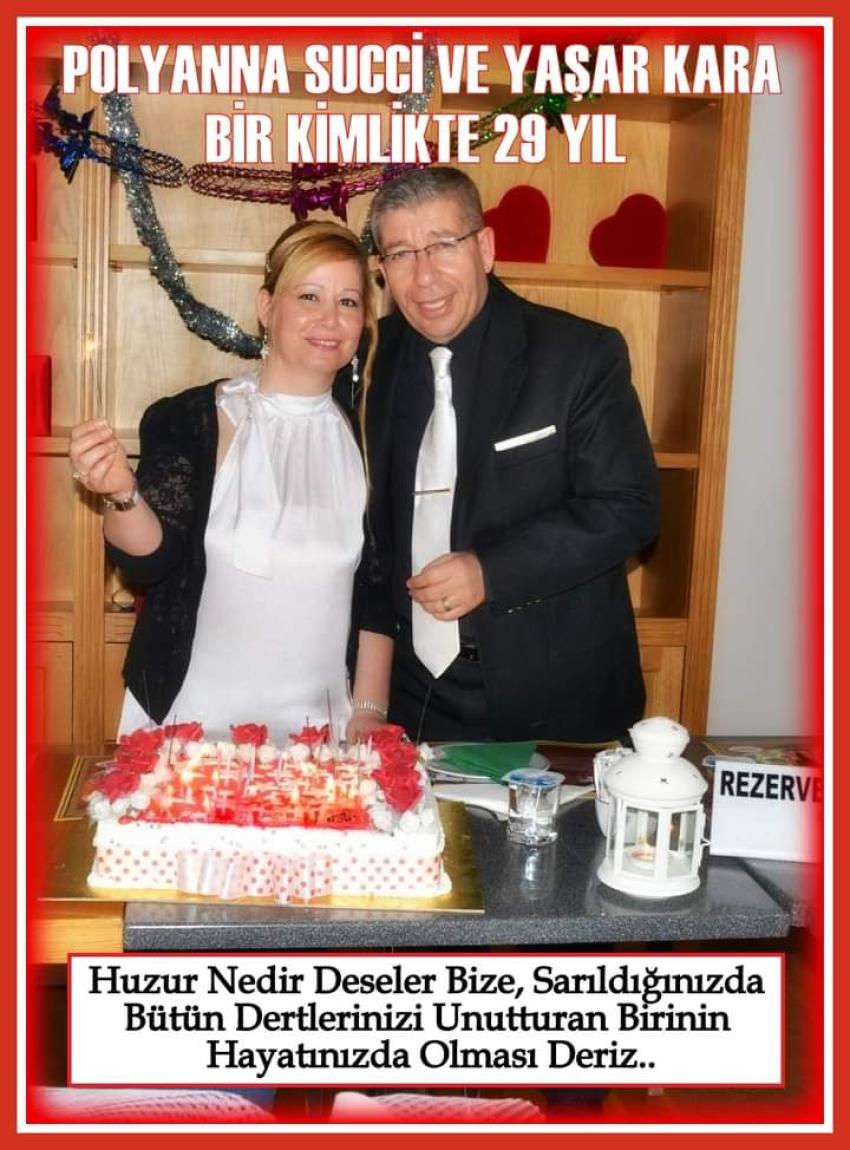 Polyanna Succi-Yaşar Kara çiftinin bu anlamlı günlerini yakinen bilen yürekleri dostluk bağıyla dolu dostları gerek telefonla ve gerekse çeşitli mesaj içeren vesilelerle bir bir arayarak mutluluk şans ve huzur temennilerinde bulundular.
