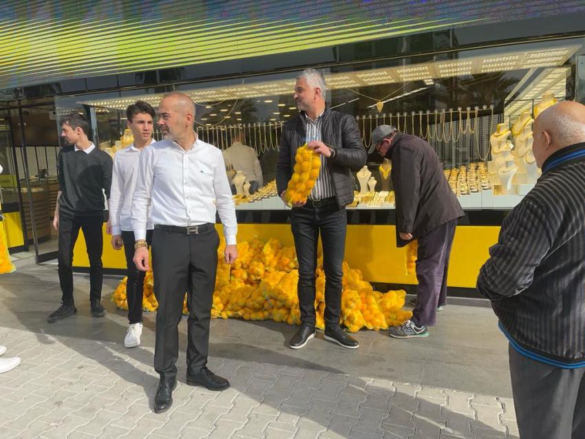 Nomanoğlu Kuyumculuk düşük fiyat nedeniyle ağaçlarını kesmek zorunda kalan narenciye üreticilerine destek oldu.