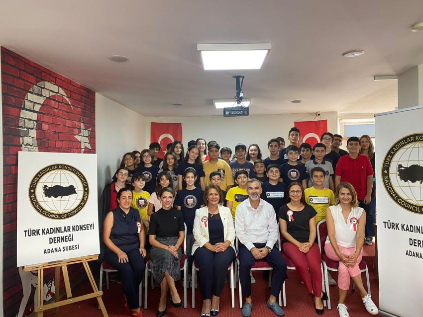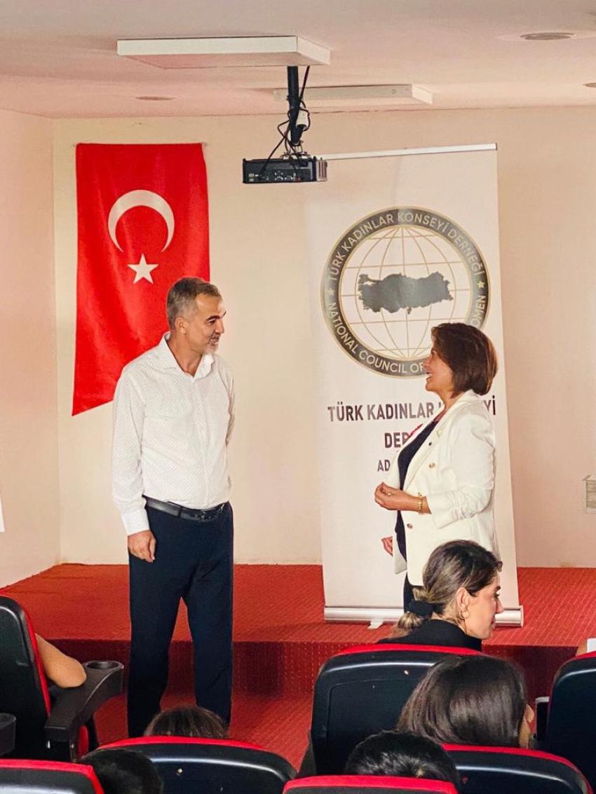 Adana'da Türk Kadınlar Konseyi Derneği (TKKD), Amerikan Kültür Kolejleri’nde ‘Barış’ konusunda öğrencilere farkındalık semineri verdi ve şiddet mağduru kadınların başarılı çocukları için kontenjan hakkı elde etti.