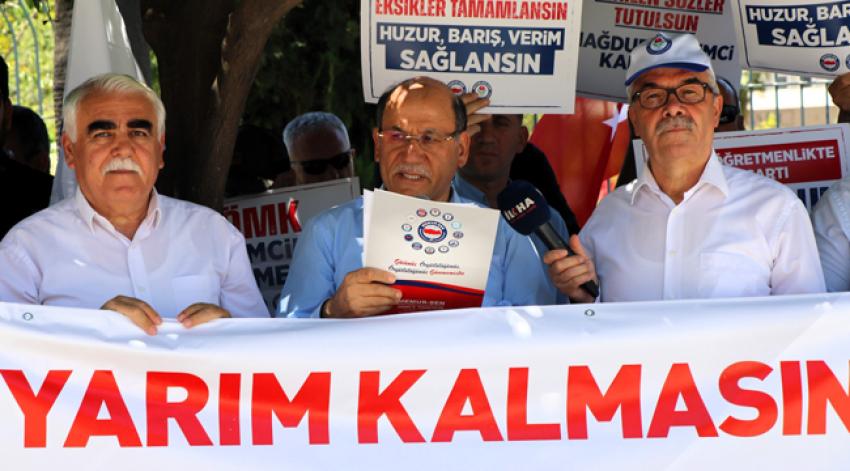 Eğitim-Bir-Sen Adana Şube Başkanı Mehmet Sezer taleplerini de sıraladı;