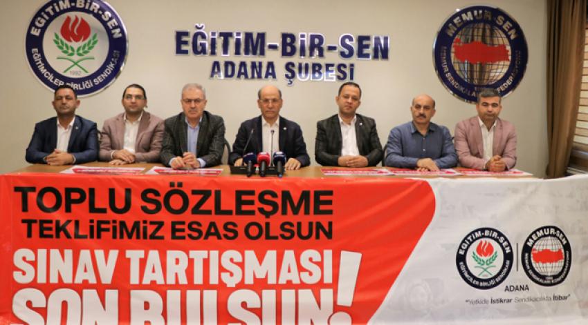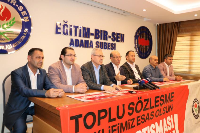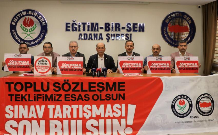 "Gelinen noktada öğretmenlerimizin talep ve haklı beklentilerini karşılayacak somut bir adım atılmamış, bu belirsizlik eğitim çalışanları ve öğretmenlerimizde moral bozukluğu ve motivasyon kaybı oluşturmuştur" diyen Eğitim-Bir-Sen Adana Şube Başkanı Mehmet Sezer sendika olarak taleplerini de şöyle sıraladı;
