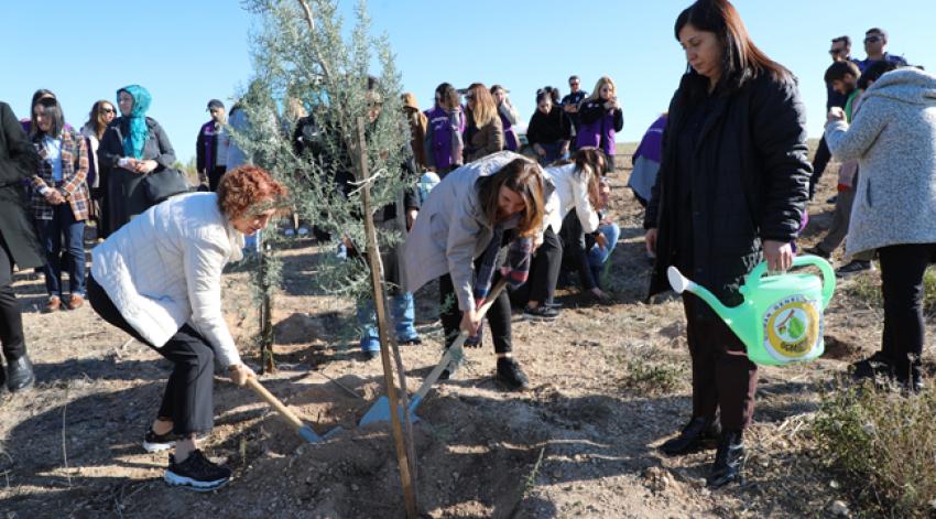 25 Kasım Kadına Yönelik Şiddetle Uluslararası Mücadele kapsamında oluşturulan ormanda, dikilen her fidan ile yaşamdan koparılan kadınların mücadelesinin ve umudunun tükenmeyeceğine dikkat çekildi.