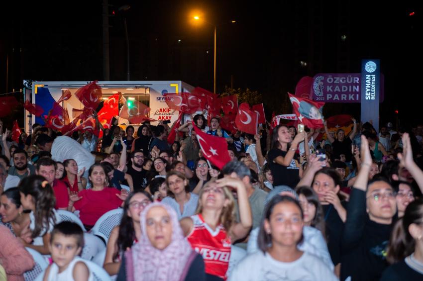 A Milli Kadın Voleybol Takımı’nın, Milletler Ligi şampiyonluğunun ardından Belçika’nın başkenti Brüksel’de oynanan 2023 CEV Avrupa Şampiyonası finalinde elde ettiği zafer Seyhan Belediyesi’nin Özgür Kadın Parkı’nda kurduğu dev ekranda heyecan ve coşkuyla izlendi. Başkan Akif Kemal Akay’ın da başından sonuna dek izleyip maçın heyecanına vatandaşlarla birlikte ortak olduğu etkinlikte, Türk kadının Cumhuriyetin 100.yılında elde ettiği zafer büyük bir coşkuyla kutlandı.