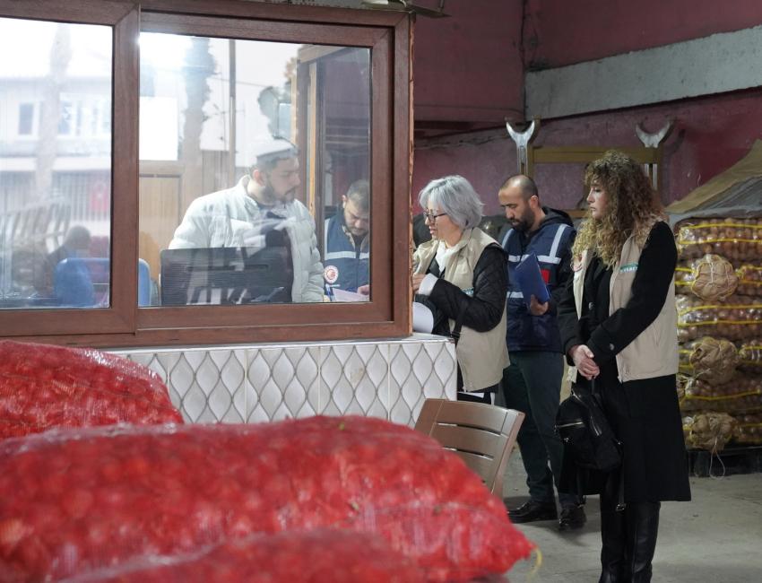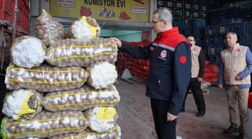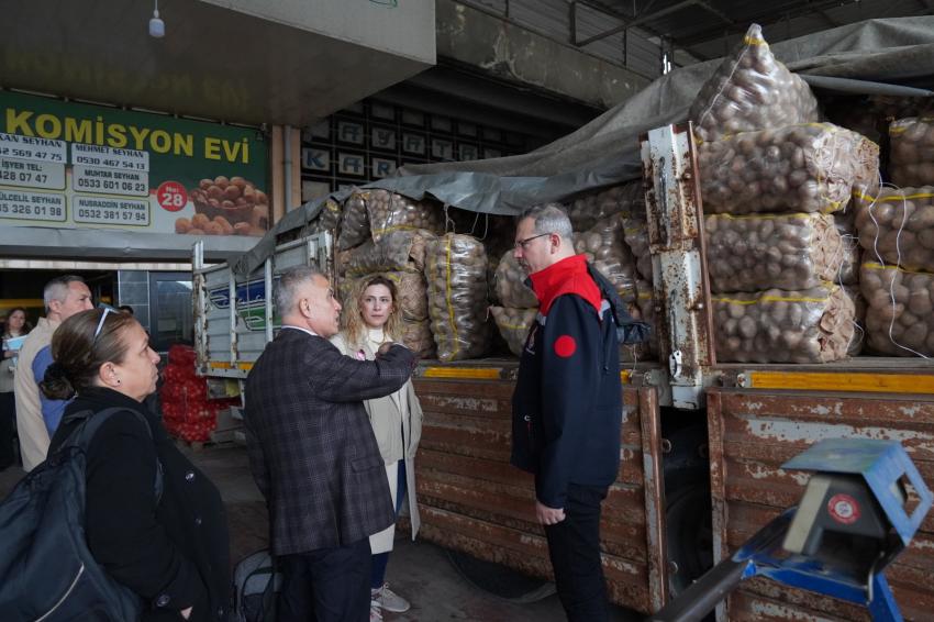 Patates ve soğanda fahiş fiyat oluşmaması ve tüketicinin mağdur edilmemesi için Tarım ve Orman Bakanlığı, Ticaret Bakanlığı ile Hazine ve Maliye Bakanlığı görevlileri Adana halinde üçlü denetim yaptı.