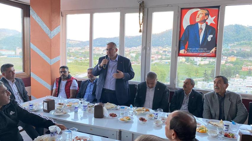 Çalışkan konuşmasında, “14 Mayıs seçim çalışmalarında köyleri geziyoruz. Biliyorsunuz bu seçimlerde Türkiye’de artık yeni dönemin bir neticesi olarak siyaset tek başına yapılmıyor. Millet İttifakı bunun örneğini gösteriyor. Saadet Partisi olarak 5 yıl önce başlanılan bir koalisyonla seçimlere giriyor. 12 Yıl Saadet Partisi İl Başkanlığı yaptım, sonra Genel İdare Kurulu üyesi oldum. Cumhuriyet Halk Partisi’nin ilk 5 listesi akıllıca oldu. 4.sırada görev aldık. Bu gerçekten önemli bir seçim. AK Parti iyi hizmetler yaptı ama çok önemli eksiklikleri de oldu. AK Parti’ye artık teşekkür ediyoruz. Devlet hayatında 22 yıl çok uzun bir süredir. Bu sürenin artık vadesi dolmuştur. Evimizde bile bir süreden sonra eşyaların değişimine gidiyoruz. Değişim insana huzur veriyor. AK Parti’nin belli bir noktadan sonra doyuma ulaştığı ortadadır. AK Parti uzun süredir yatağan seyrediyor. Cumhur İttifakı son dönemde YRP, HÜDA-PAR ve DSP’yi yayına alarak kaybetme ihtimalini düşündü.” Şeklinde konuştu.