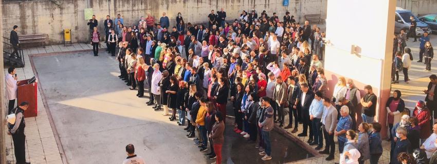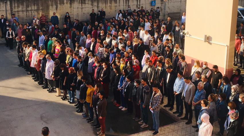 Saatler 09.05’i gösterdiğinde tüm yurtta, tüm kalpleri birleştiren saygı ve anma ifade eden sirenlerin çalması ile Atatürk bir kez daha anıldı. Saygı duruşu ve tüm sağlık çalışanlarının hep birlikte seslendirdikleri İstiklal Marşından sonra “Ay yıldızlı Türk Bayrağı” yarıya indirilerek “ulusal matem”e ortak olundu.