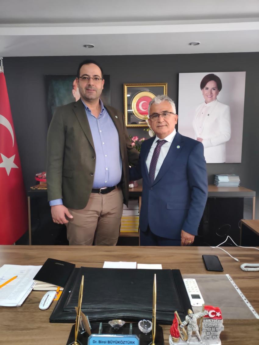İYİ Parti İl Başkanı Dr. Birol Büyüköztürk'ü makamında ziyaret eden Duran Hakan Şaşmaz, 'hayırlı olsun' dileğinde bulunarak, başarılar diledi.