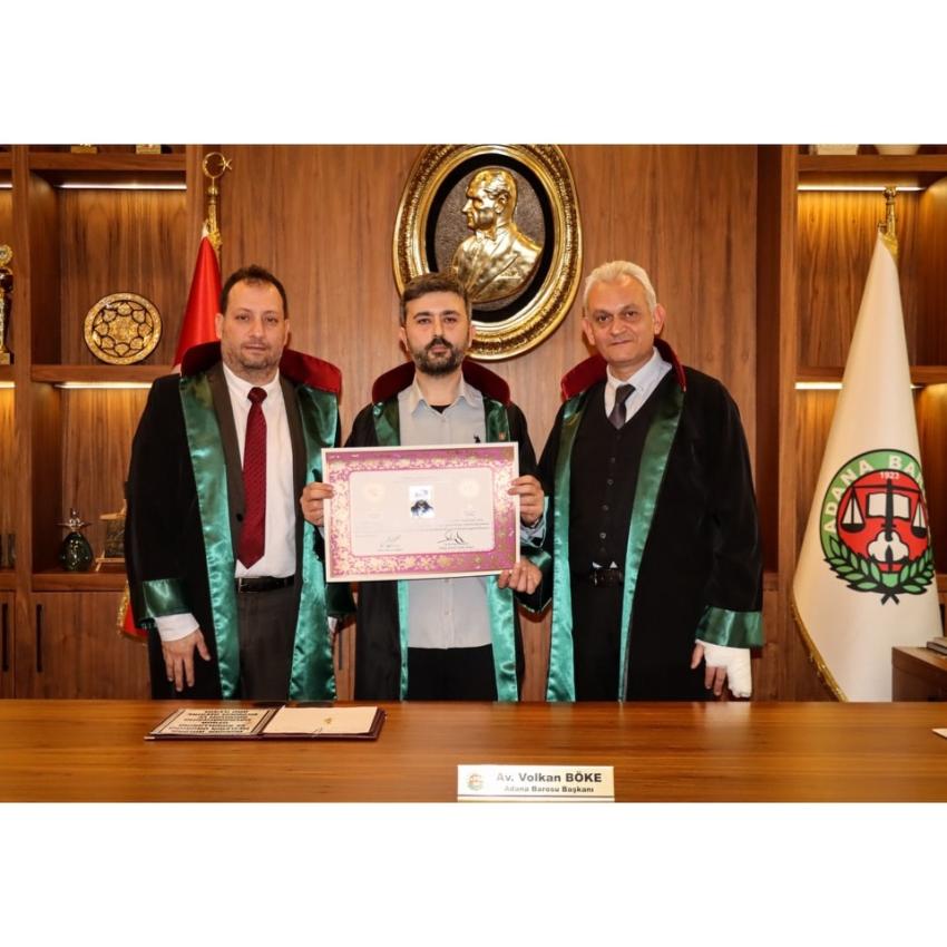 Baro Başkanlığı makamında düzenlenen ruhsat törenine; Adana Barosu Başkanı Av. Volkan Böke, Başkan Yardımcısı Av. Hüseyı̇n Saygılı, Genel Sekreter Av. Hasan Soylu, Sayman Av. Zülal Elmalı Erdem, Yönetim Kurulu Üyeleri Av. Muammer Yılancıoğlu, Av. Barış Soğukpınar, Av. Mehmet Gökberk, Av. Maı̇de İncesoy, Av. Özgür Barış Tellı̇, Av. Denı̇z Gökçe Kavaklı, avukatlar, aileler ve misafirler katıldı.