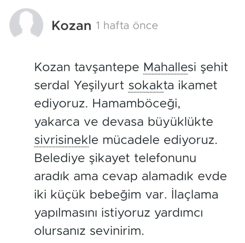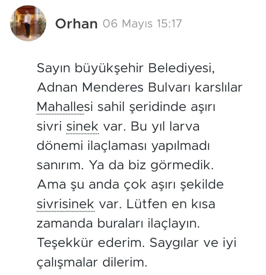 “Vatandaşlarımız ya sıcaktan ya da sinekten uyuyamaz hale gelirken, canından bezmiş durumda. Yaşanan sorundan en çok çocuklar, yaşlı ve hasta vatandaşlarımız olumsuz etkileniyor. Sinekler ve haşeratlarla bulaşıcı hastalıklar da taşındığı için sorun hayati derecede önemlidir. İnsanlarımızın sağlığı risk altındadır.”