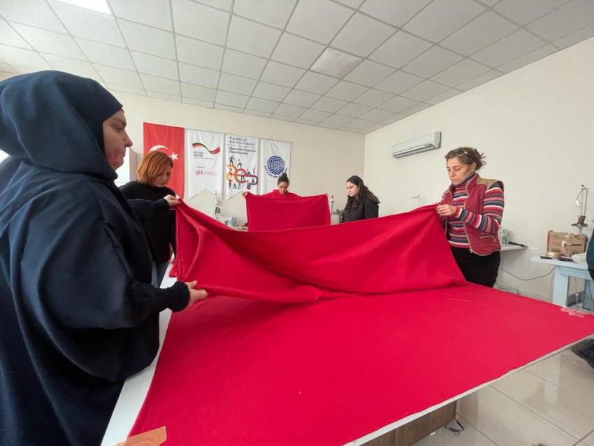 Belediyenin üretim alanları da yine afet bölgelerindeki depremzedeler için aralıksız üretime geçti.