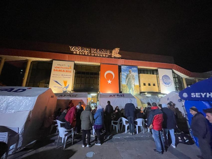 Depremin ardından Selman-ı Pak Kültür Merkezi ve Şakirpaşa’daki aşevi mutfakları tam kapasiteyle çalışmaya başladı. Günlük 7500 sıcak yemek, 20 bin sıcak çorba, 2 bin kumanya, 2 bin sandviç ile çocuklar için yüzlerce litre süt, her gün Seyhan Belediyesi’ne ait çok amaçlı tesislerde, bilgi evlerinde, spor salonlarında, kreşlerde, Seyhan Sanat Meydanı’nda ve diğer tesislerde, havaalanı, otogar, hastaneler ve diğer sağlık tesisleri, muhtarlıklar, hipodrom, camiler, düğün salonları, enkaz bölgelerinde ve diğer toplanma alanlarındaki yurttaşlar ile diğer illerden Adana’ya nakledilen depremzede yurttaşlara dağıtılıyor.