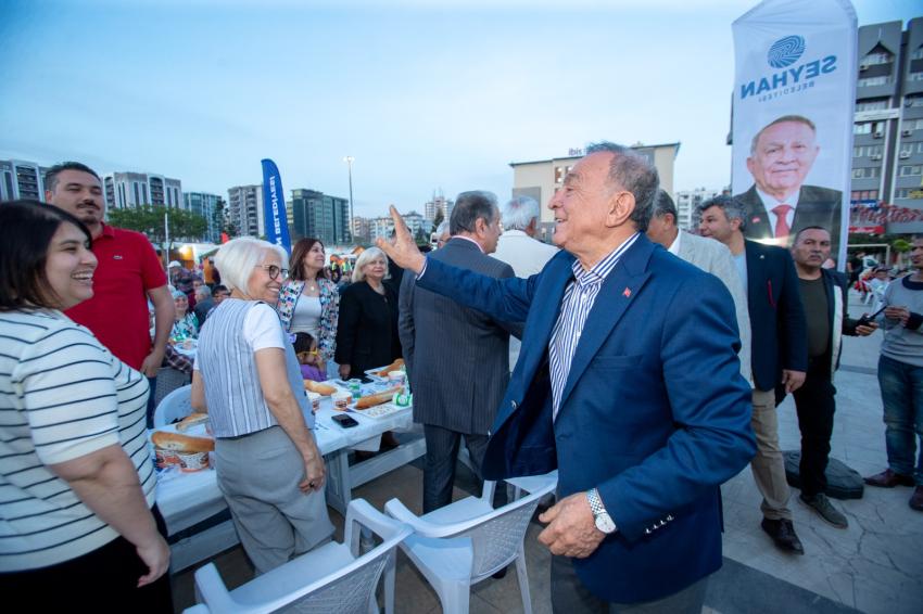 Seyhan Sanat Meydanı’nda kurulan iftar sofrasında Seyhan Belediye Başkanı Akif Kemal Akay, CHP Adana Milletvekili Ayhan Barut, meclis üyeleri, muhtarlar, milletvekili adayları, CHP İl, ilçe örgütleri, kadın ve gençlik kollarının başkan ve yöneticileri, Millet İttifakını oluşturan siyasi partilerin temsilcilerinin de katılımıyla gerçekleştirilen iftarda, alanı dolduran binlerce Adanalı orucunu dualar eşliğinde açtı.