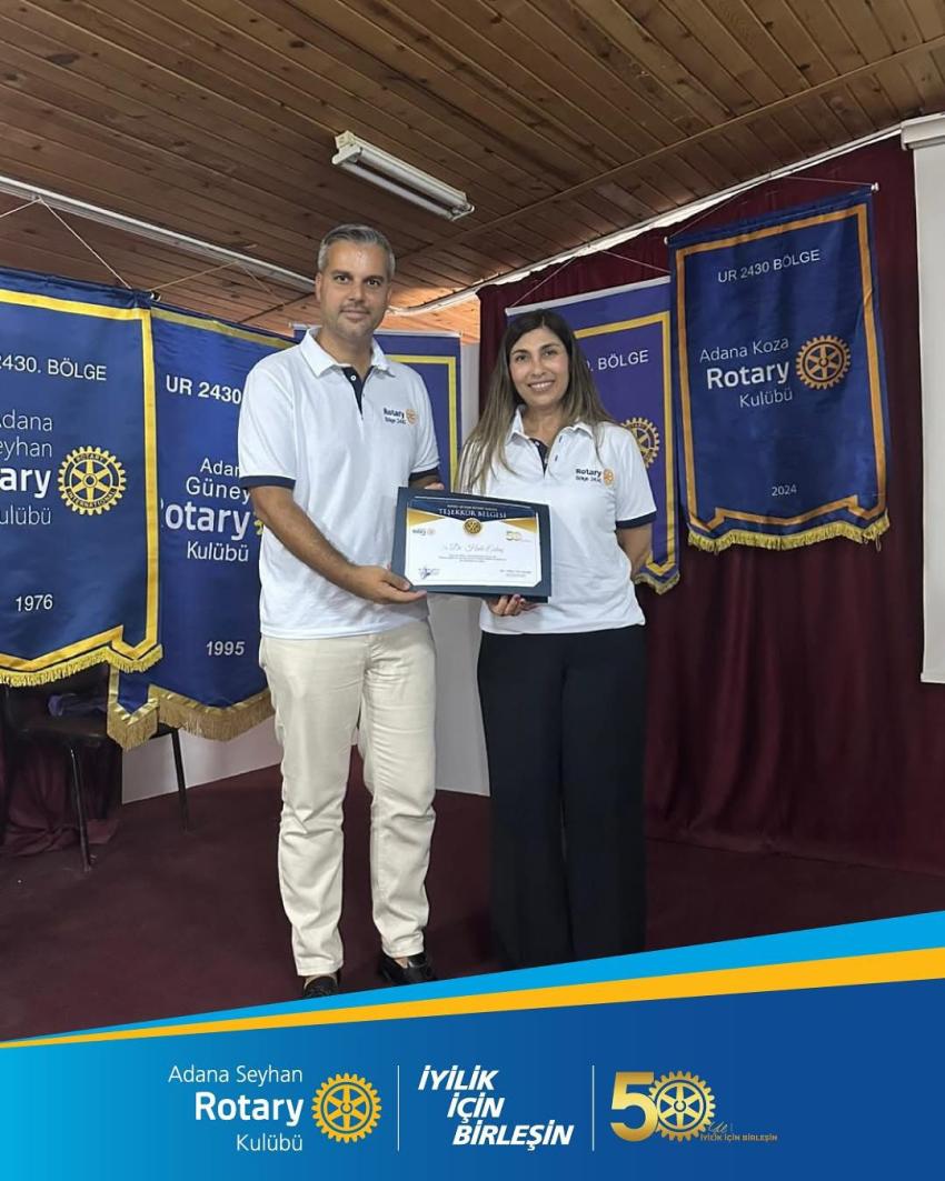 Katılımlarından dolayı Seyhan Rotary dönem başkanı Ömer Gökçe’ye, GDB Cüneyt Evrüke ve Seher’e, kulüp saymanı Fuat Aksoy’a teşekkür edildi.